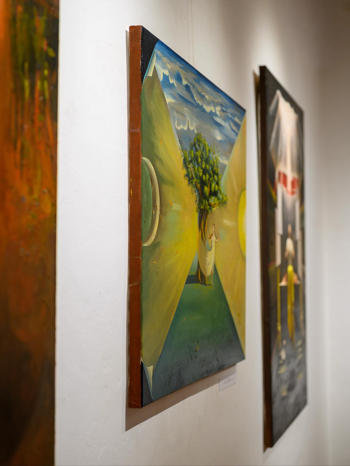 – Svaki dio ima dvadeset izložaka – prvih 20 su ulja na platnu od kojih su neka već izlagana – no ovaj put – kako to biva, nerijetko i dorađena. Većina je nastala u proteklih pet godina. Prepuštam promatračima da procjene koliko je napretka ili odmaka od dosadašnjeg u njima. Drugi dio jest skup crteža, nacrta, dizajnerskih rješenja koji su nastali nakon 2020. g. a potaknuti narudžbom za potrebe jedne knjige. Tih prvih nekoliko crteže potaknulo me na kreiranje sličnih oblika imaginarnih mjesta koje sama zajedno sa novim ilustracijama nazvao Damidania. Ovdje je izbor njih 20 od stotinjak napravljenih, stoje u katalogu riječi autora izložbe.