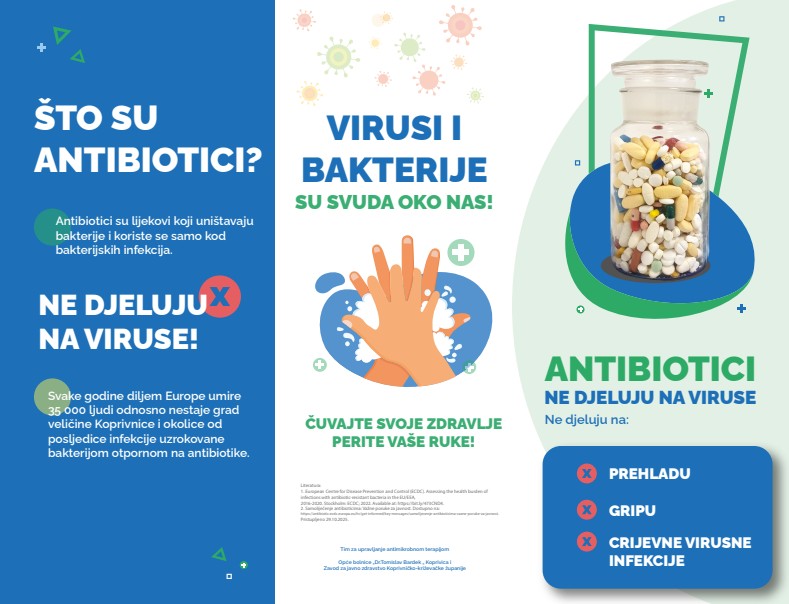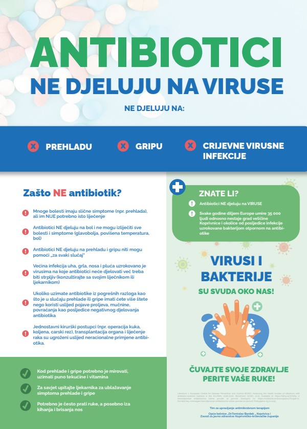 Povodom Europskog dana svjesnosti o antibioticima koji se svake godine obilježava 18. studenog i Svjetskog tjedna svjesnosti o antimikrobnim lijekovima koji se obilježava od 18. do 24. studenoga, u ponedjeljak je u prostorijama Županijske uprave Koprivničko-križevačke županije održana konferencija za medije s ciljem podizanja svijesti o odgovornoj upotrebi antibiotika. Dio je to kampanje koja se provodi u sklopu projekta „Upravljanje primjenom antimikrobnih lijekova u primarnoj zdravstvenoj zaštiti u Koprivničko-križevačkoj županiji“, a glavna tema ove godine je „Od otpornosti do otpornosti: zdravstveni djelatnici predvode promjenu“.