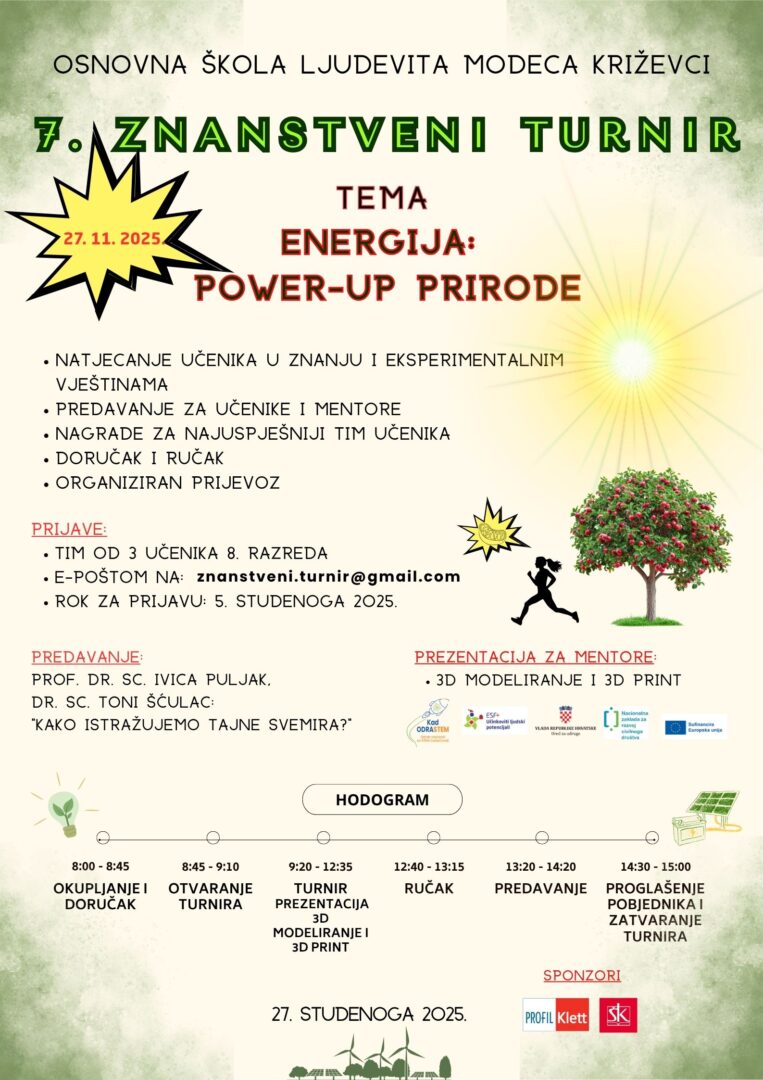 U Osnovnoj školi Ljudevita Modeca Križevci 27. studenoga 2025. održat će se 7. znanstveni turnir pod temom „Energija: Power-up prirode“. U sklopu turnira bit će održano i drugo javno predstavljanje projekta #KadOdraSTEM.