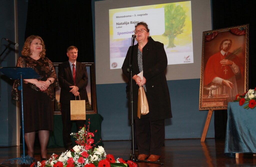 U žanru monodrame prva je nagrada pripala Vojmilu Žicu iz Zagreba za rad „Drži me za ruku“, druga nagrada Dori Mihanović iz Zadra za monodramu „Dolori“, a treća Nataliji Bajer iz Lukača za rad „Spominek“. Pokrovitelj te nagrade bilo je Nacionalno svetište sv. Josipa iz Karlovca, a nagrade je dodijelio izaslanik protojerej-stavrofor Željko Pajić.