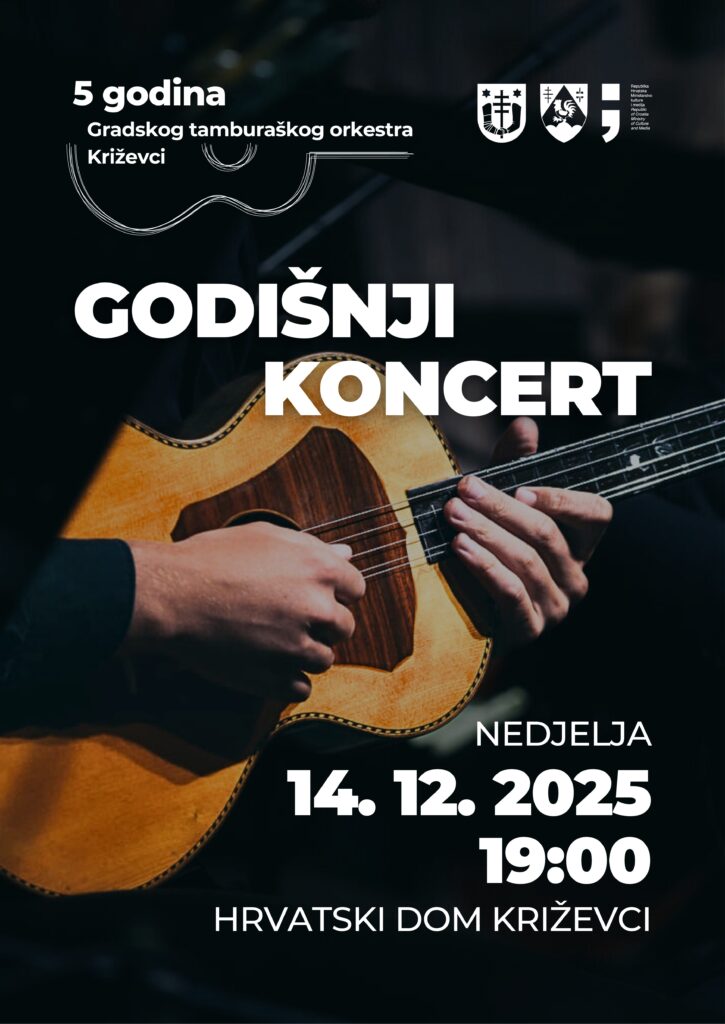 Gradski tamburaški orkestar Križevci obilježava pet godina uspjeha i rada koncertom u nedjelju, 14. prosinca u dvorani Hrvatskoga doma s početkom u 19. sati. Iz uprave udruge pozivamo sugrađane da dođu poslušati koncert te podržati Gradski tamburaški orkestar kako bi i sami čuli što će ponosno predstaviti tijekom proljetne turneje u Kini sljedeće godine.