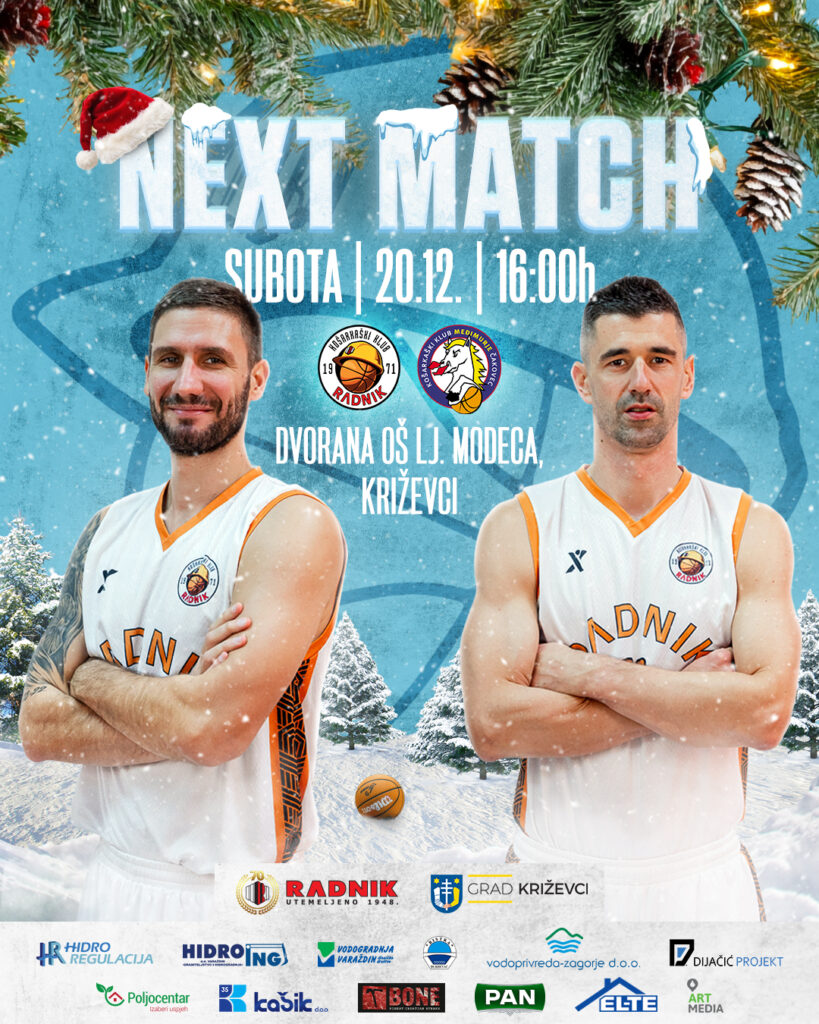 U subotu, 20. prosinca 2025. godine, s početkom u 16:00 sati, u dvorani Osnovne škole Ljudevita Modeca u Križevcima (Potočka 26), odigrat će se derbi 11. kola 2. Muške lige Sjever, u kojem domaća momčad dočekuje KK Međimurje Čakovec.