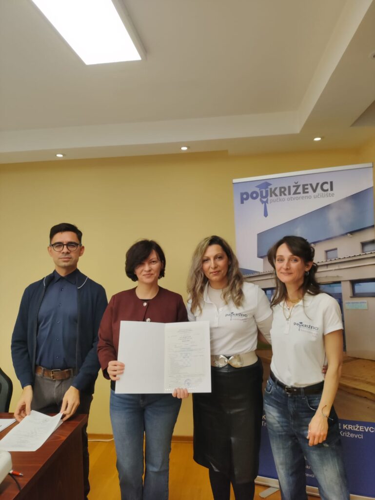 U Pučkom otvorenom učilištu Križevci prošli je tjedan održana službena podjela uvjerenja novoj grupi polaznica programa „Njegovateljice u institucionalnoj i izvaninstitucionalnoj skrbi“. Uz stručno i predano vodstvo nastavnika Damjana Abou Aldana, mag. phil., mag. med. techn. te Ines Kos, bacc. med. techn., polaznice su savladale široki spektar znanja – od temeljnih teorijskih znanja o njezi i skrbi do praktičnih vještina neophodnih za svakodnevni rad.