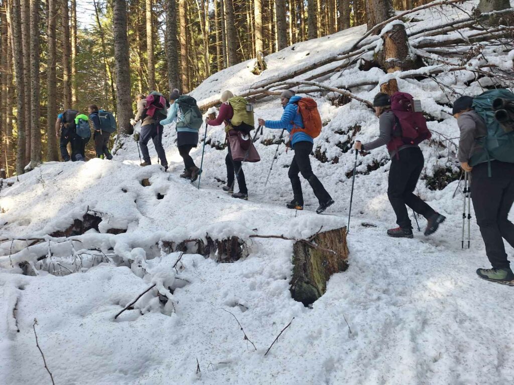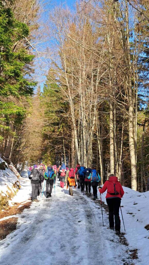 Jutro smo započeli u 5:00, u vrijeme kad i pijetli još drijemaju. Srećom, ekipa je bila dobro opskrbljena – neki su već iz busa vadili vrući kuhani čaj, a neki tatarski čaj, pa je put prema Ratečama prošao u oblacima mirisne pare koja nas je grijala bolje nego svaki planinarski flis.