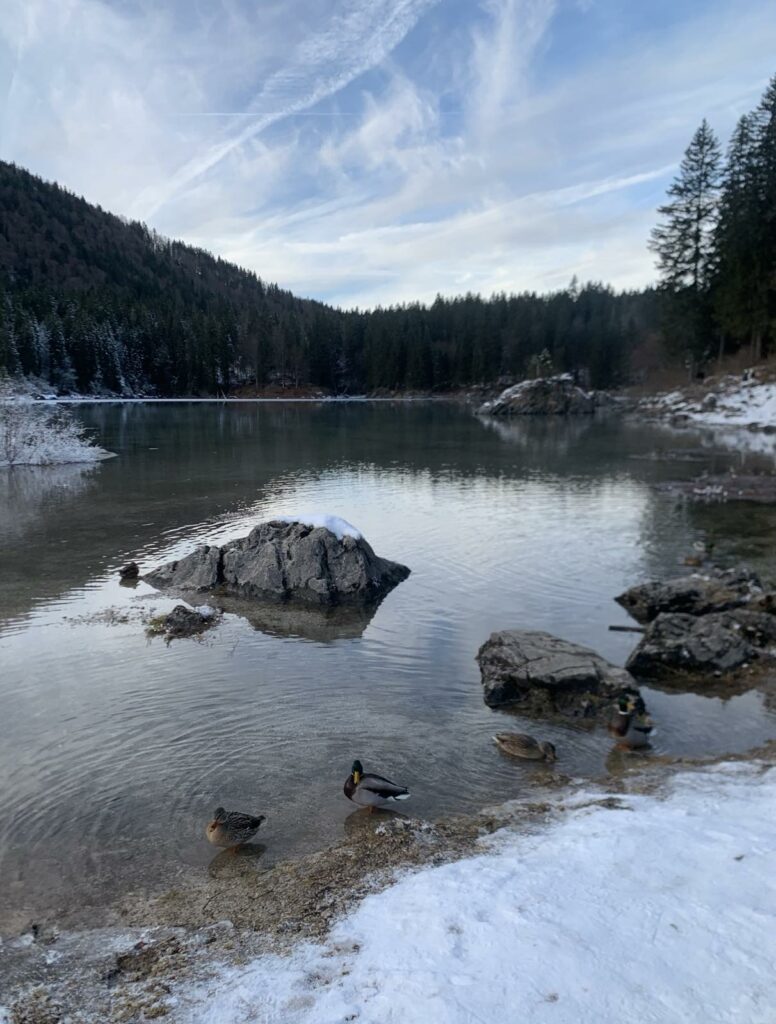Tirkizna voda, zrcalni odrazi i mekana šumska tišina bili su pravo malo iznenađenje. Šetnja oko jezera bila je idealna – dovoljno duga za uživanje, a ipak dovoljno kratka da troje malih planinara ne stignu istražiti baš svaku rupicu i kamen (ali skoro su uspjeli).