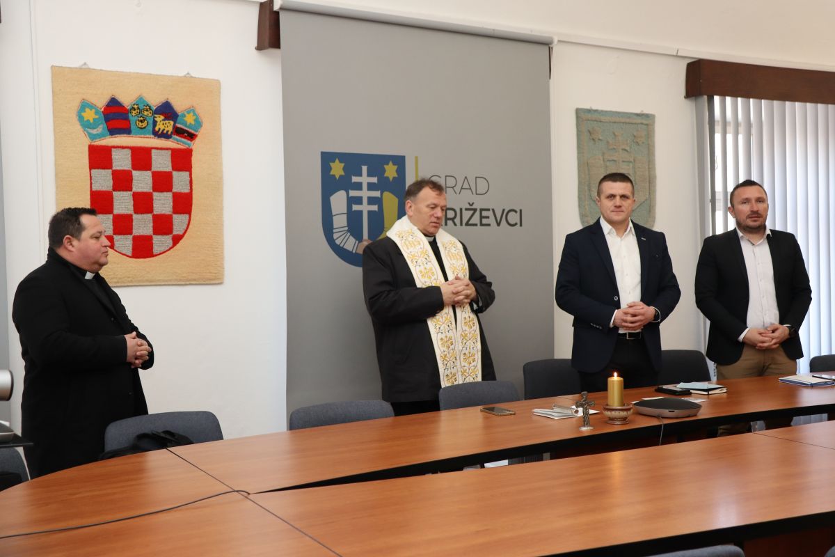 Blagoslov je udijelio župnik župe sv. Ane preč. Stjepan Soviček u nazočnosti Kristijana Bogdana, župnika župe Blažene Djevice Marije Žalosne i Svetog Marka Križevčanina. Uz riječi molitve i blagoslova, prečasni Soviček uputio je najbolje želje u novoj godini te poželio puno uspjeha u radu, dok je gradonačelnik Katanović zahvalio na odličnoj suradnji u proteklih godinu dana.