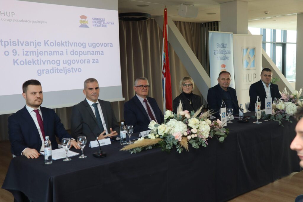 Ugovor su potpisali predsjednik HUP-Udruge poslodavaca graditeljstva Mirko Habijanec i predsjednica Sindikata graditeljstva Hrvatske Jasenka Vukšić. Devete izmjene i dopune Kolektivnog ugovora za graditeljstvo stupaju na snagu 1. veljače 2026. godine. Važeći Kolektivni ugovor za graditeljstvo sklopljen je 2015. godine, a najnovije izmjene donesene su s ciljem održivog razvoja građevinskog sektora, jačanja učinkovite primjene ugovora i poboljšanja položaja radnika.