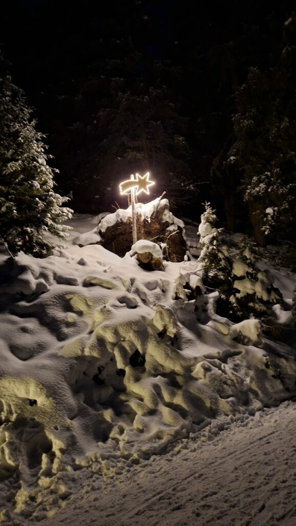 Nastavljamo Stazom vilenjaka, dugom 2,5 kilometra, gdje se stvarnost i mašta isprepliću. Oni koji žele mogu taj dio puta prijeći konjskom zapregom, dok ostali polako upijaju svaki detalj: božićni labirint, tople stanice s čajem i kuhanim vinom te romantičnu svjetleću šumu koja obasjava snježne grane i stvara nezaboravnu atmosferu.