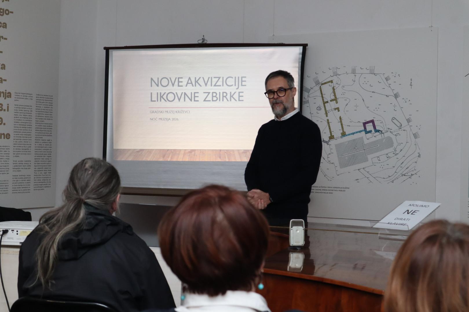 Viši kustos Ozren Blagec predstavio je nove akvizicije Likovne zbirke, vrlo atraktivne provenijencije, koje je Ministarstvo kulture i medija, na preporuku Hrvatskog muzejskog vijeća, darovalo Gradskom muzeju Križevci. Radi se o četiri umjetnička dijela koja su oduzeta bivšem premijeru Ivi Sanaderu te dodijeljena na čuvanje Gradskom muzeju Križevci.