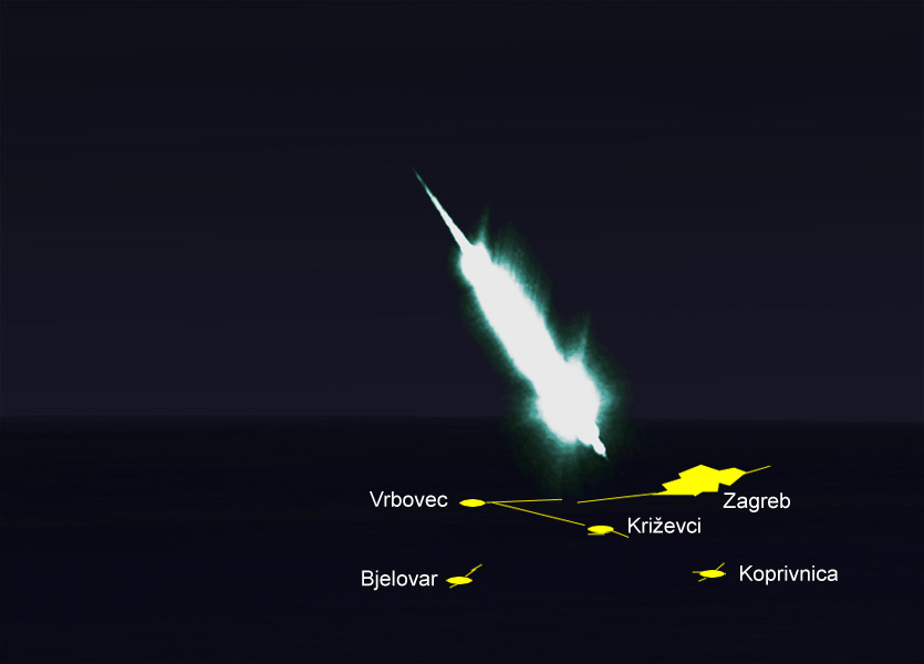 Bolid Križevci, u noći 5. veljače 2011. godine (foto Hrvatska meteorska mreža)