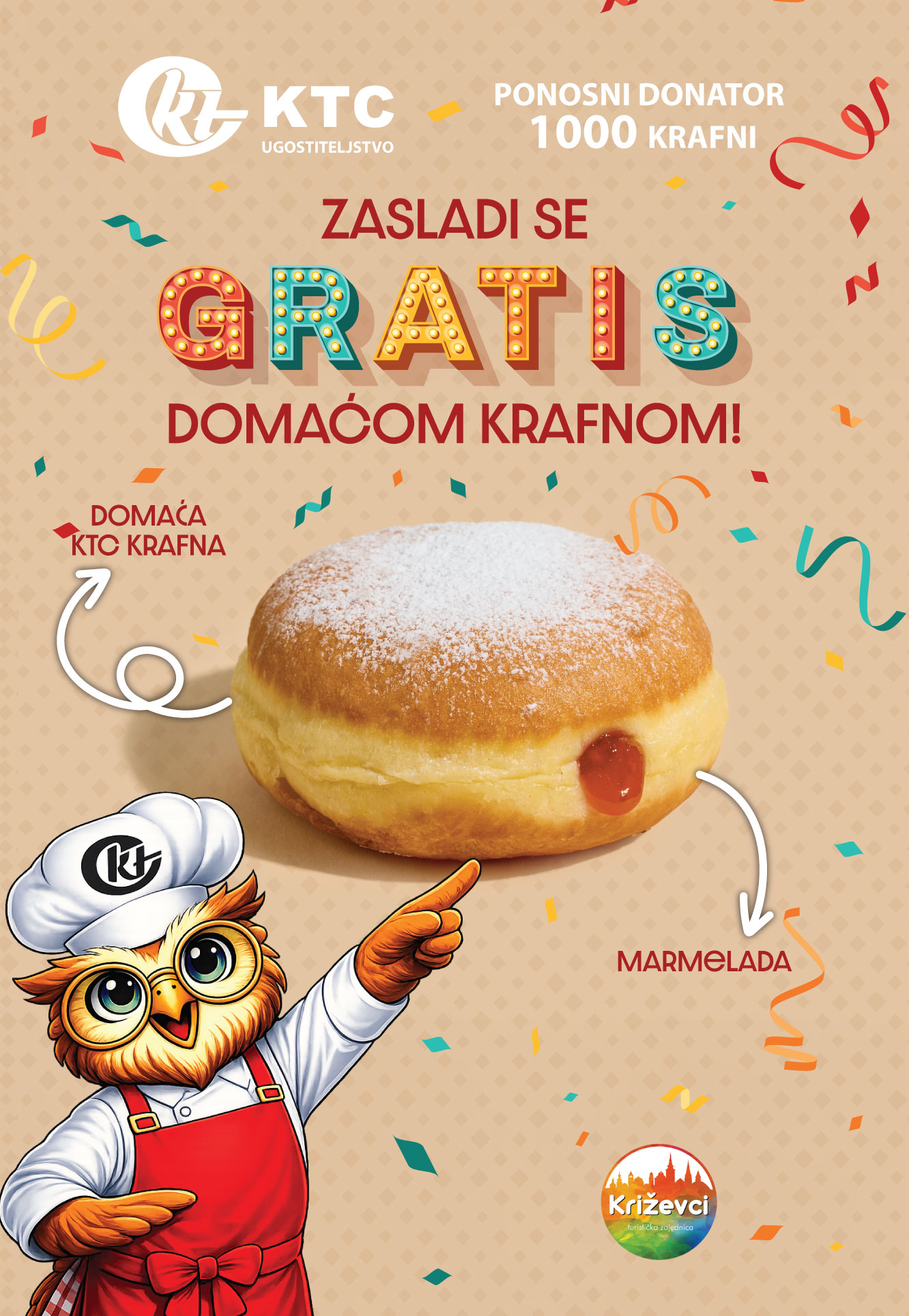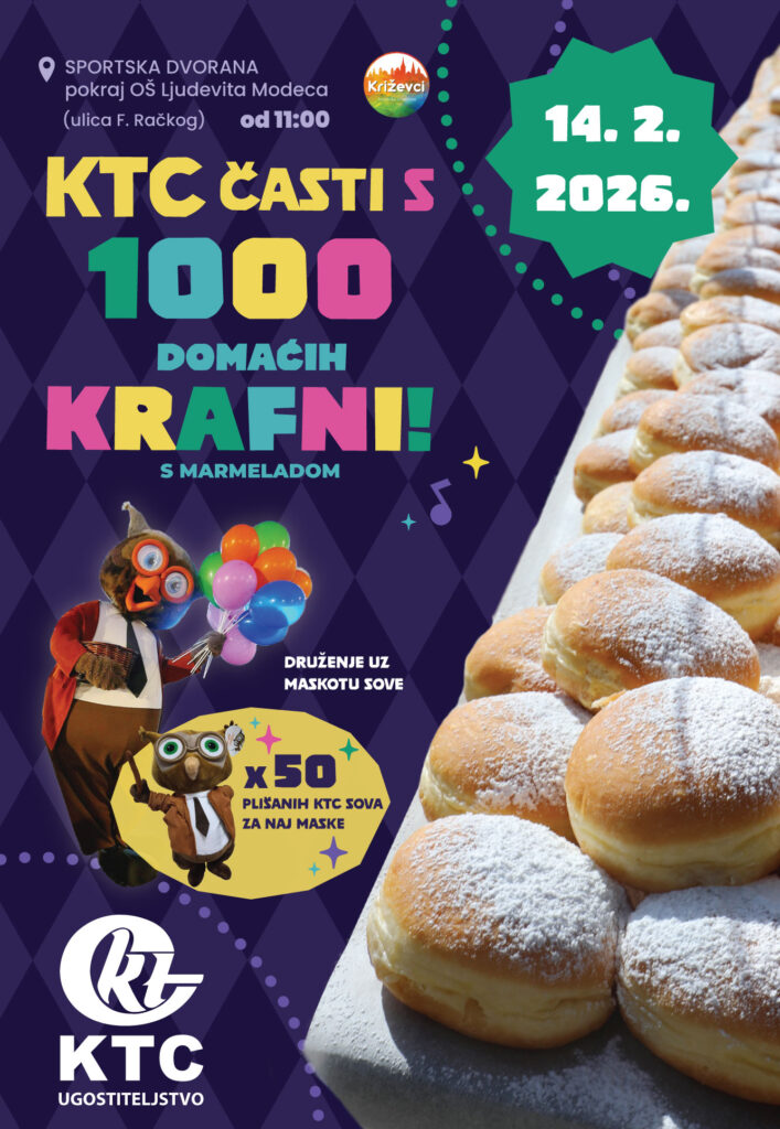 Sutra će povodom Fašnika KTC organizirati darivanje u sklopu kojega građane časti domaćim krafnama. Iz KTC Trgovina poručuju kako su svi pozvani na Križevački fašnik u novu sportsku dvoranu pokraj Osnovne škole Ljudevita Modeca (ulica Franje Račkog).
