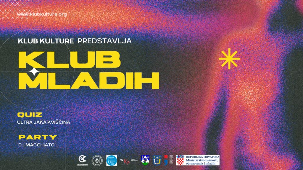 Večer će od 20 sati otvoriti hit kviz ULTRA JAKA KVIŠČINA kojom će okupljeni testirati svoje znanje, voditelj je ultra jaki Mika Krmpotić. Ekipe je moguće prijaviti na e-mail adresu kontakt@klubkulture.org – za prijavu je potrebno poslati naziv ekipe, ime i prezime članova (njih 4) i kontakt broj, ciljana skupina kviza su srednjoškolci i studenti.