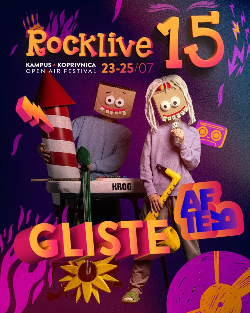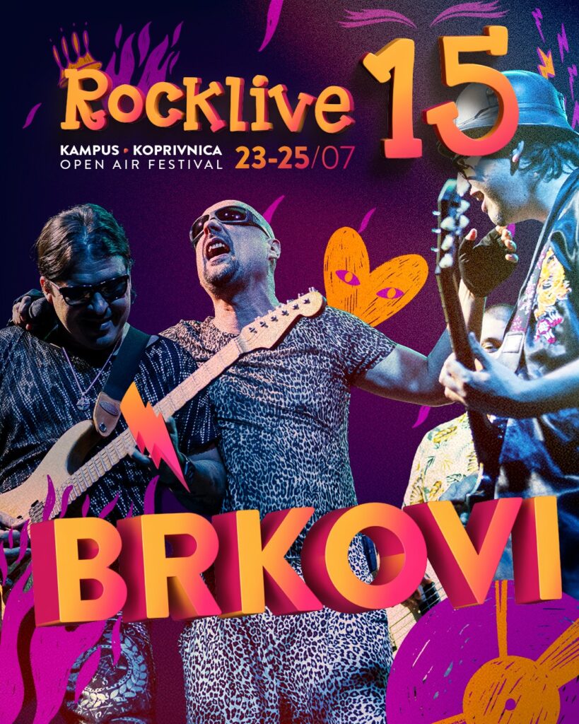 Uz Lasagnu, pojačanje Rocklive-u #15 čine Brkovi, koji će koprivničku publiku razveseliti svojom punk-folk-welness seansom i izvedbom numera poput Tolerancija, Seks i droga, Nisam ja za tebe i mnogih drugih iz njihovog repertoara. Da na RockLive-u punk još uvijek živi potvrđuje i odabir trećeg najavljenog benda, zagrebački pankeri Mašinko od 2010. godine praše pravi punk rock, vjerujemo kako će u Koprivnici Potjeh pronaći rakiju, bila ona servirana od strane vjerne rimske vojske ili pročelnika za kulturu općine Živi Rok (tih dana u godini u ulozi selektora hitova na RockLive radiju), Ivana Gundića. Četvrto novo ime su Gliste, popularni slovenski duo koji uživa brojnu publiku, kako na društvenim mrežama tako i na nastupima – teško je točno opisati o čemu se radi u ovom projektu, najbolje je uvjeriti se sam dolaskom na 15. RockLive.