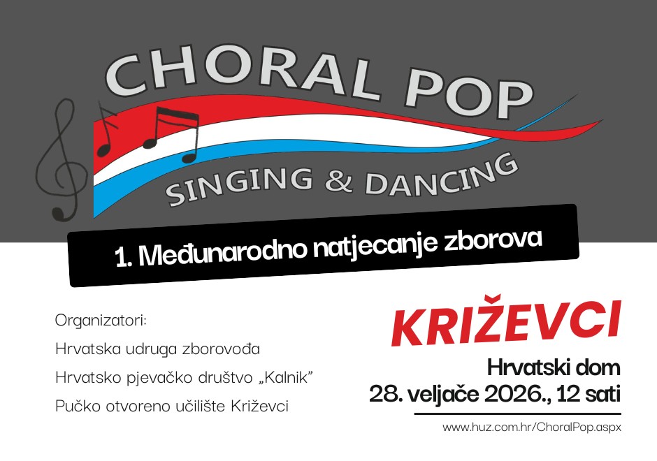 Križevci su 28. veljače 2026. bili domaćin 1. Međunarodnog natjecanja zborova „Choral Pop – Singing & Dancing”, prvog natjecanja zborova u popularnoj glazbi u Republici Hrvatskoj. Organizatori su Hrvatska udruga zborovođa, Hrvatsko pjevačko društvo „Kalnik” i Pučko otvoreno učilište Križevci, a okupilo se dvanaest zborova iz različitih hrvatskih gradova te iz Zrenjanina u Srbiji.