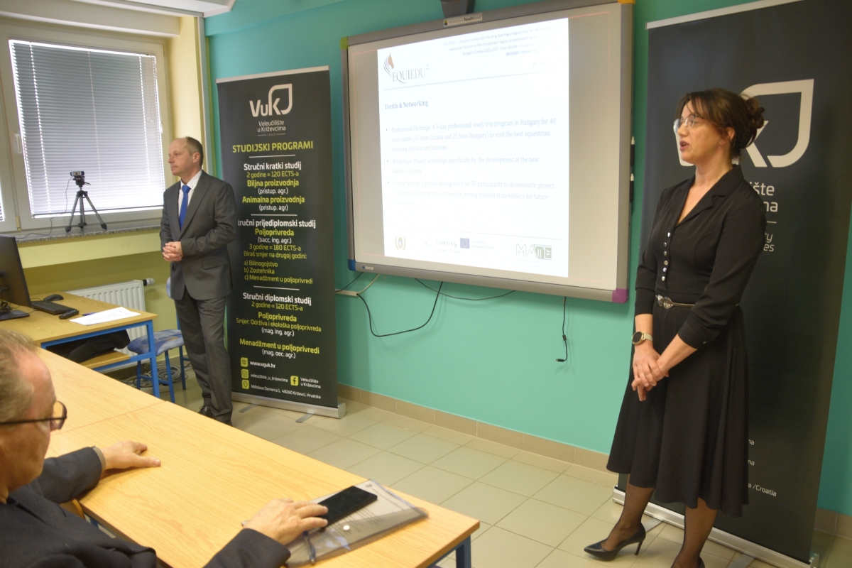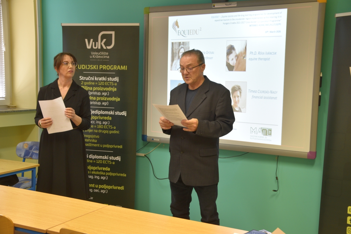 Na Veleučilištu u Križevcima, 20. ožujka 2026. godine svečano je otvoren projekt EquiEdu2 – razvoj konjičkog turizma i cjeloživotnog obrazovanja. Projekt se provodi u suradnji sa Sveučilištem MATE iz Kapošvara (Mađarska) u okviru programa Interreg VI-A Mađarska–Hrvatska 2021.–2027..