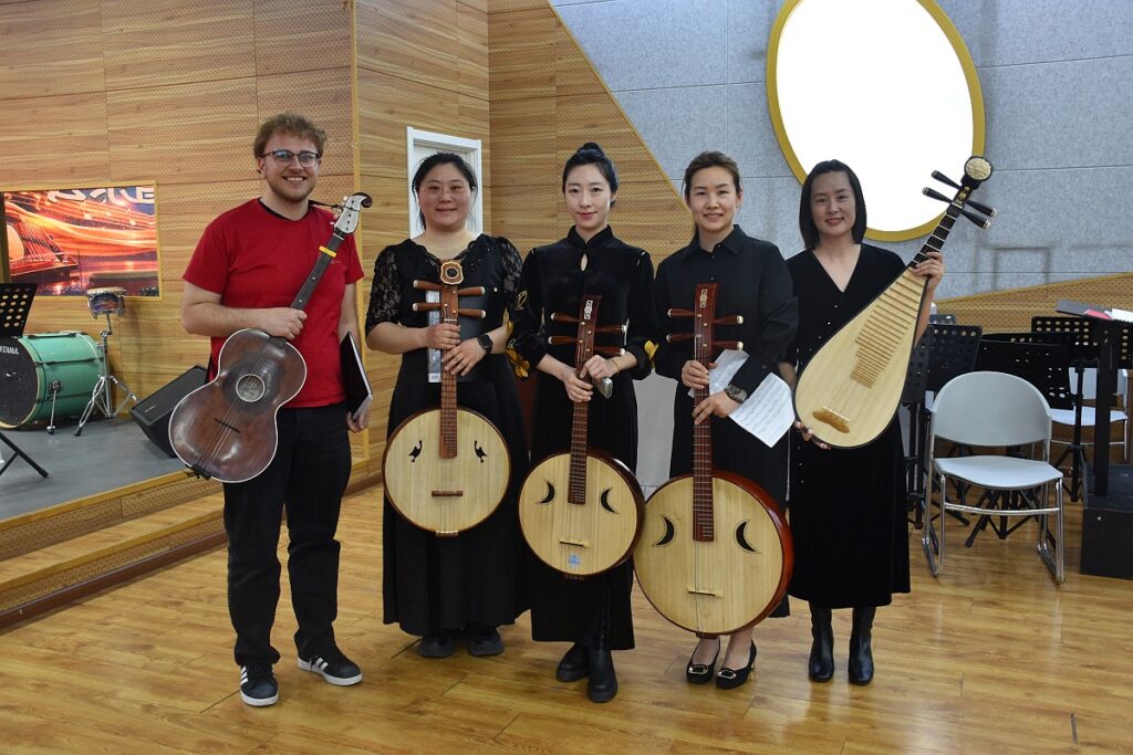 Križevčani su najprije održali kratku probu s nastavnicima ustanove koji su im se pridružili u izvedbi hrvatskim folklorom inspirirane skladbe Siniše Leopolda “Lipo ti je kad se kuruz sije”, kako bi uskladili dionice, nakon čega je održan službeni dio radionice. Na probi su članovi orkestra također zamijenili instrumente s kineskim nastavnicama kako bi isprobali svirati na srodnim i Križevčanima nepoznatim trzalačkim instrumentima naziva Zhong Ruan, Da Ruan i Pipa, a berdašima se pridružio kontrabasist.