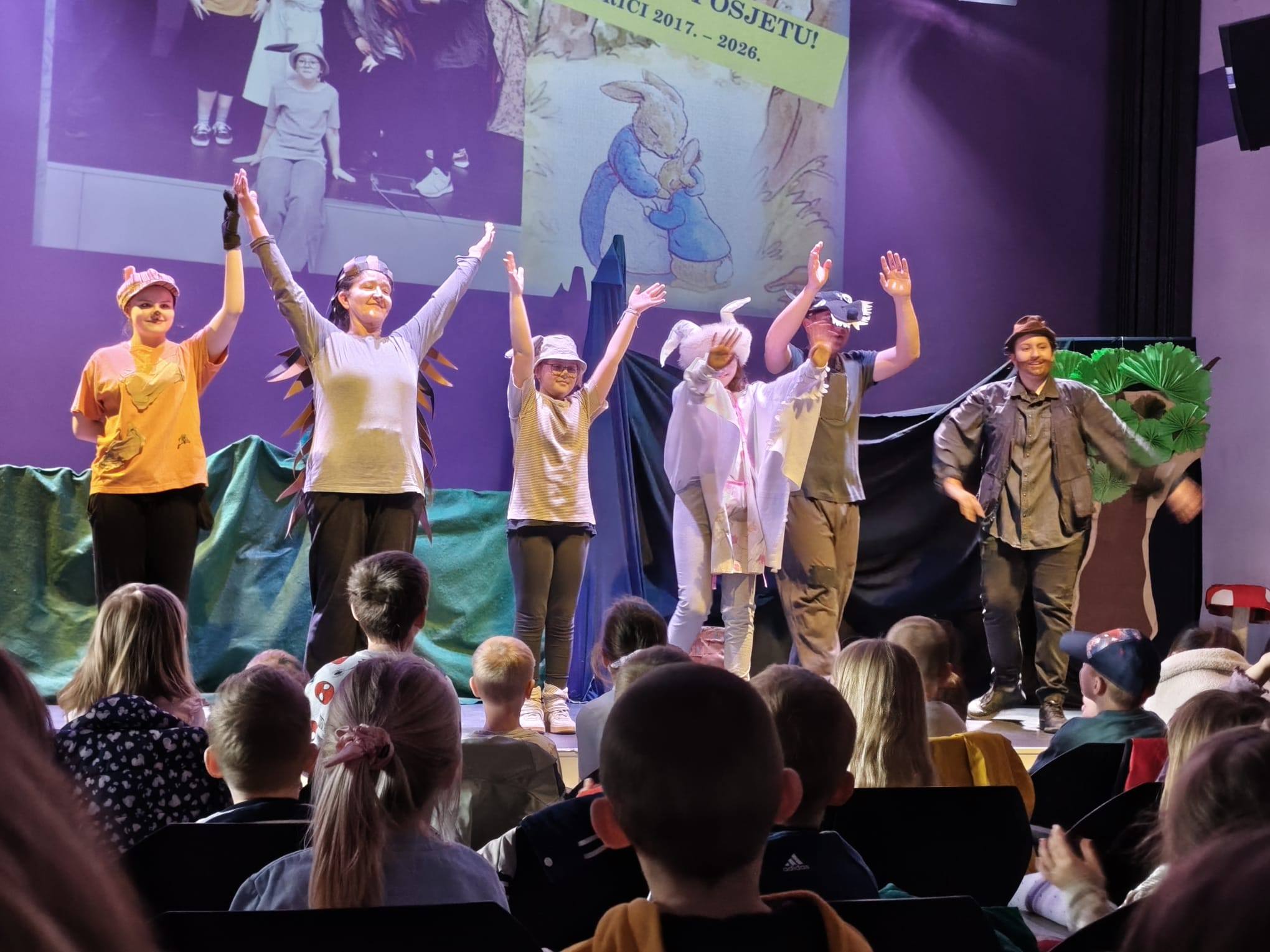 Dramska družina „Kolibrići“ je u četvrtak 9. travnja 2026. u prepunoj dvorani Gradske knjižnice „Franjo Marković“ Križevci premijerno izvela novu predstavu za djecu Zeko traži mamu, prema dramskom tekstu Mire Gavrana.