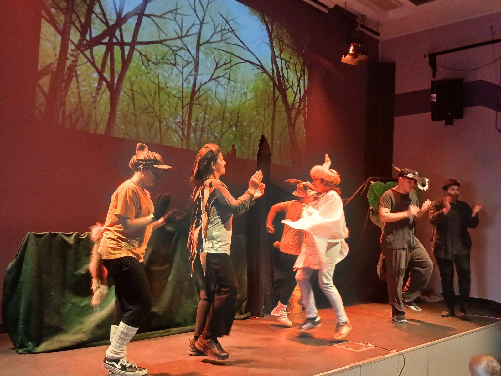 Predstavu u trajanju od 30 minuta, namijenjenu djeci vrtićke i predškolske dobi, izveli su glumci: Lada Krušić (zeko), Tea Sekelj (lovac), Marijana Tvorić (ježica), Leona Božičević (lisica), Marko Sekelj (vuk) i Rea Miklobušec (zekina mama). Rekvizite, gljive i panj, izradili su Una Babić i Matija Vrhovec. Tekst i glazbu za predstavu obradila je i prilagodila voditeljica dramske družine Sanja Marković, za rasvjetu je odgovoran Lovro Janeš, a koordinatorica programa je Marina Vidović Krušić.
