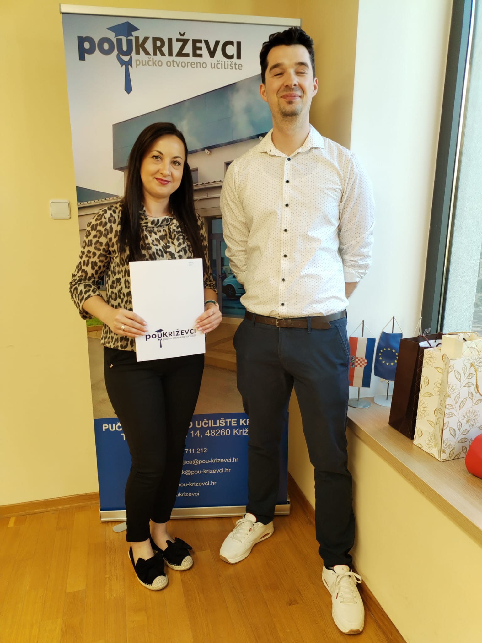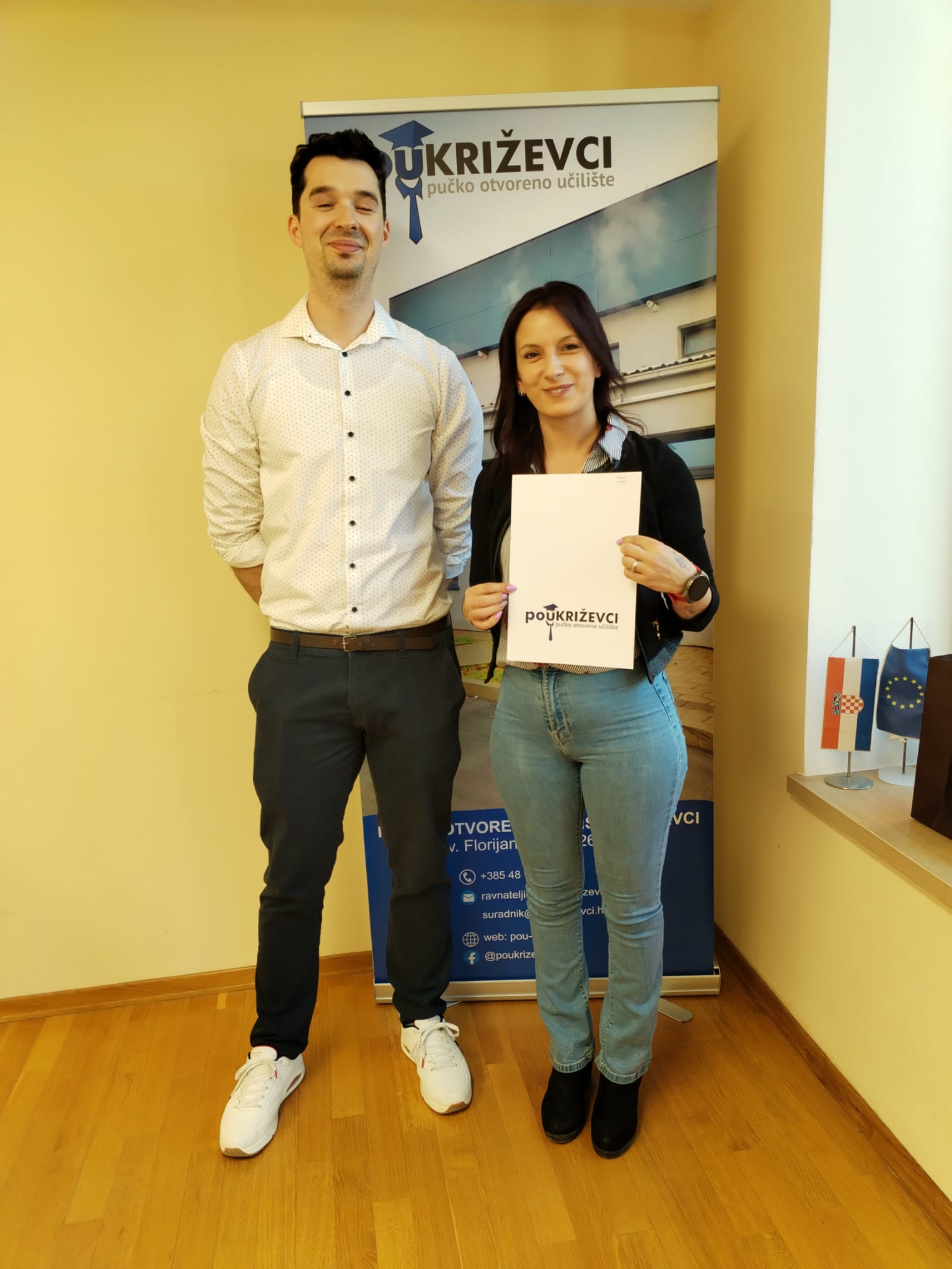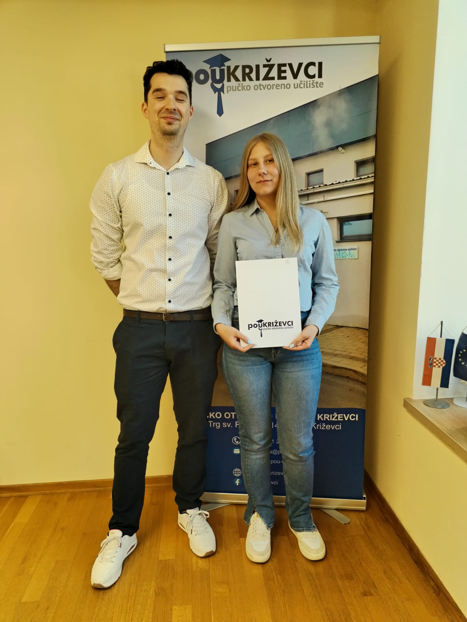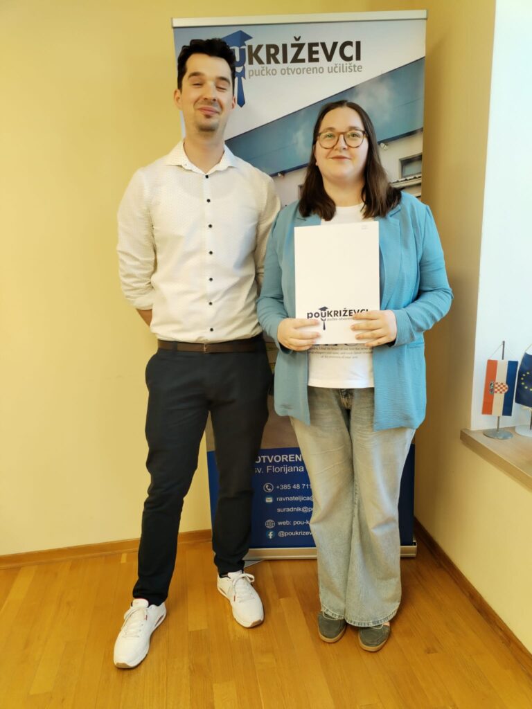 U Pučkom otvorenom učilištu Križevci održana je svečana podjela uvjerenja polaznicima programa pomoćnik/pomoćnica u nastavi, koji su uspješno završili svoje obrazovanje. Na postignutom uspjehu čestitali su im stručni suradnik Karlo Jurišić, mag. educ. hist., i profesorica Mihaela Jelenčić, mag. educ. rehab., istaknuvši njihov trud, predanost i važnost ovog poziva u odgojno-obrazovnom sustavu.