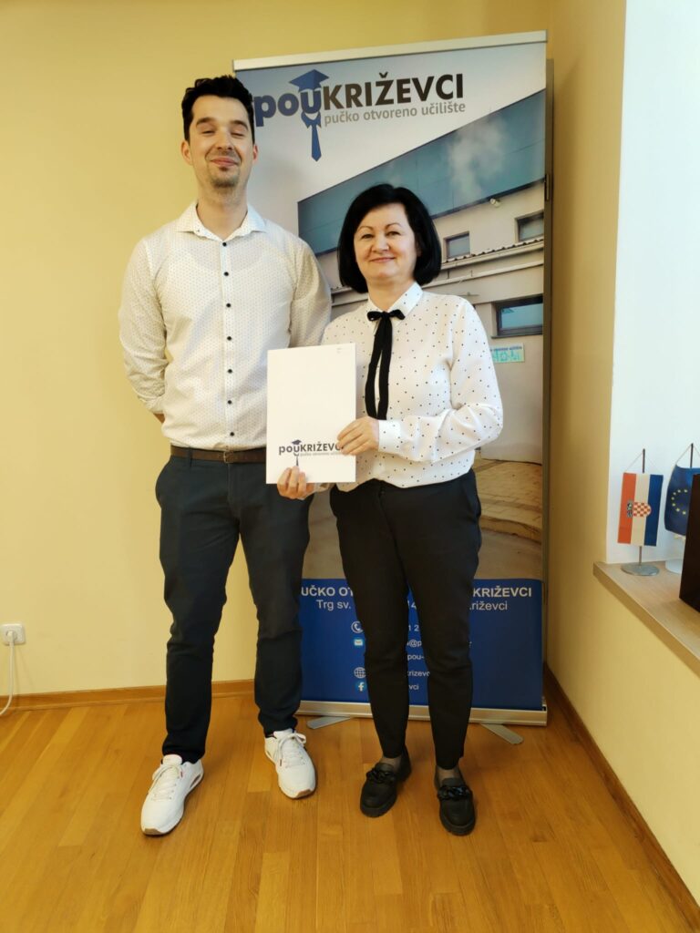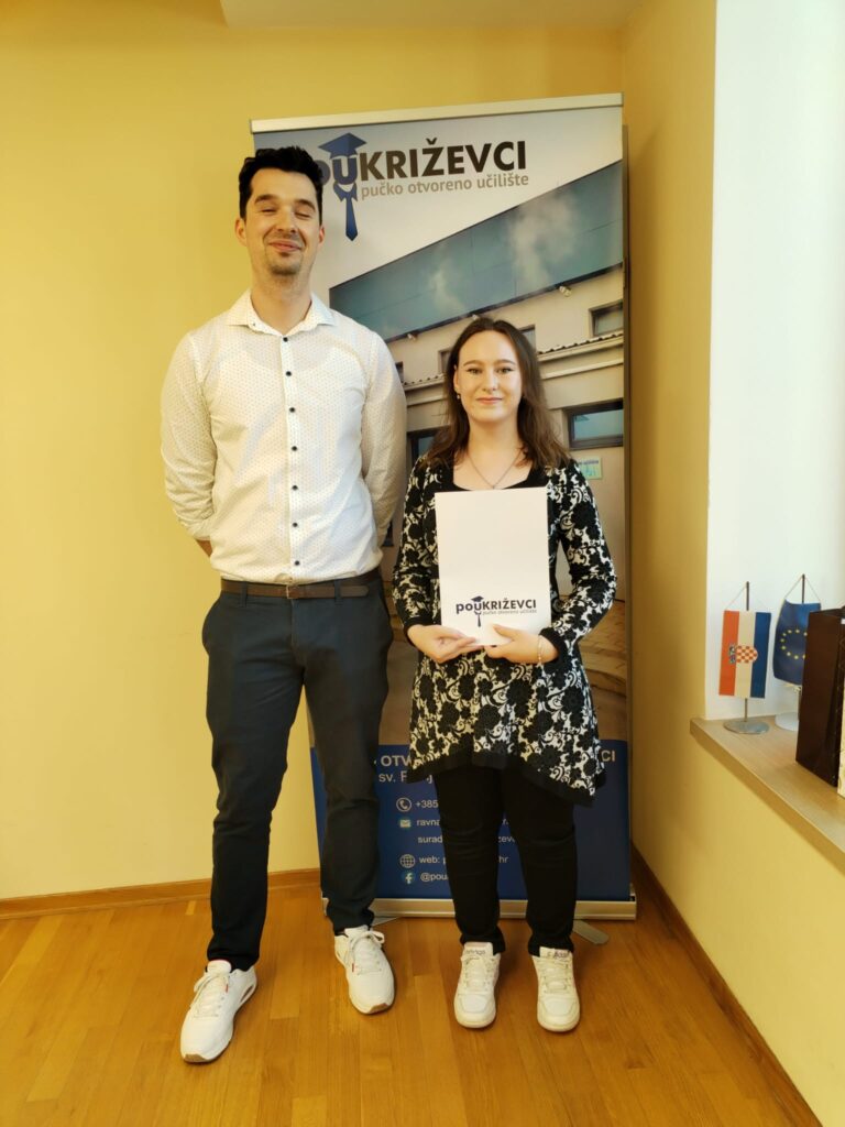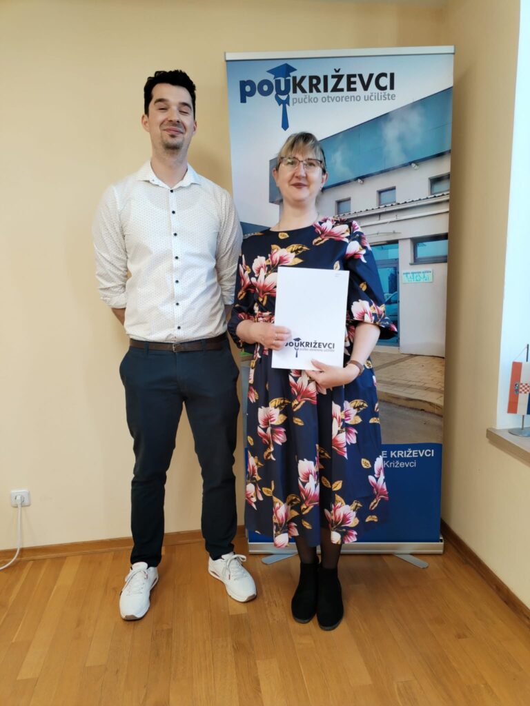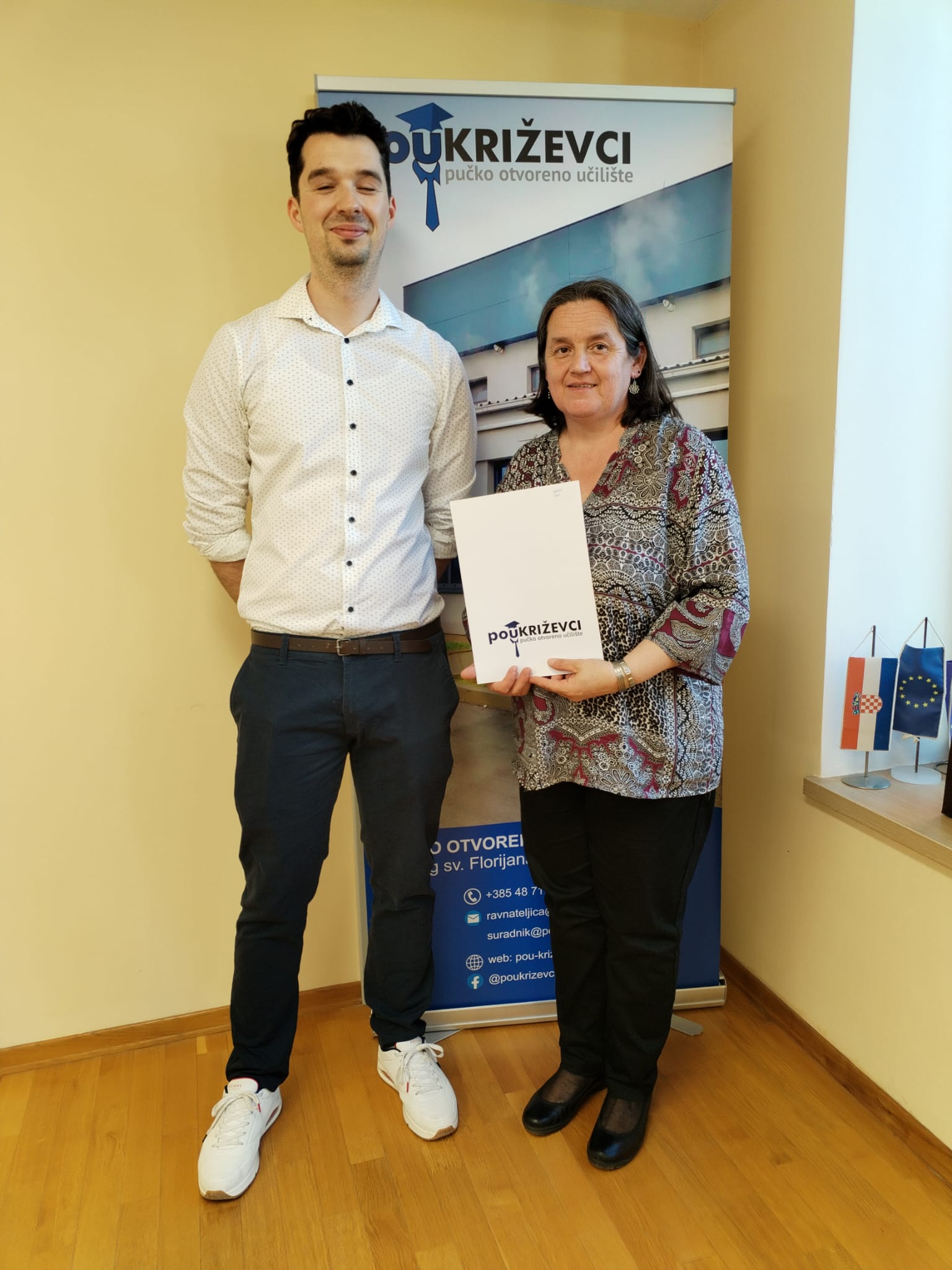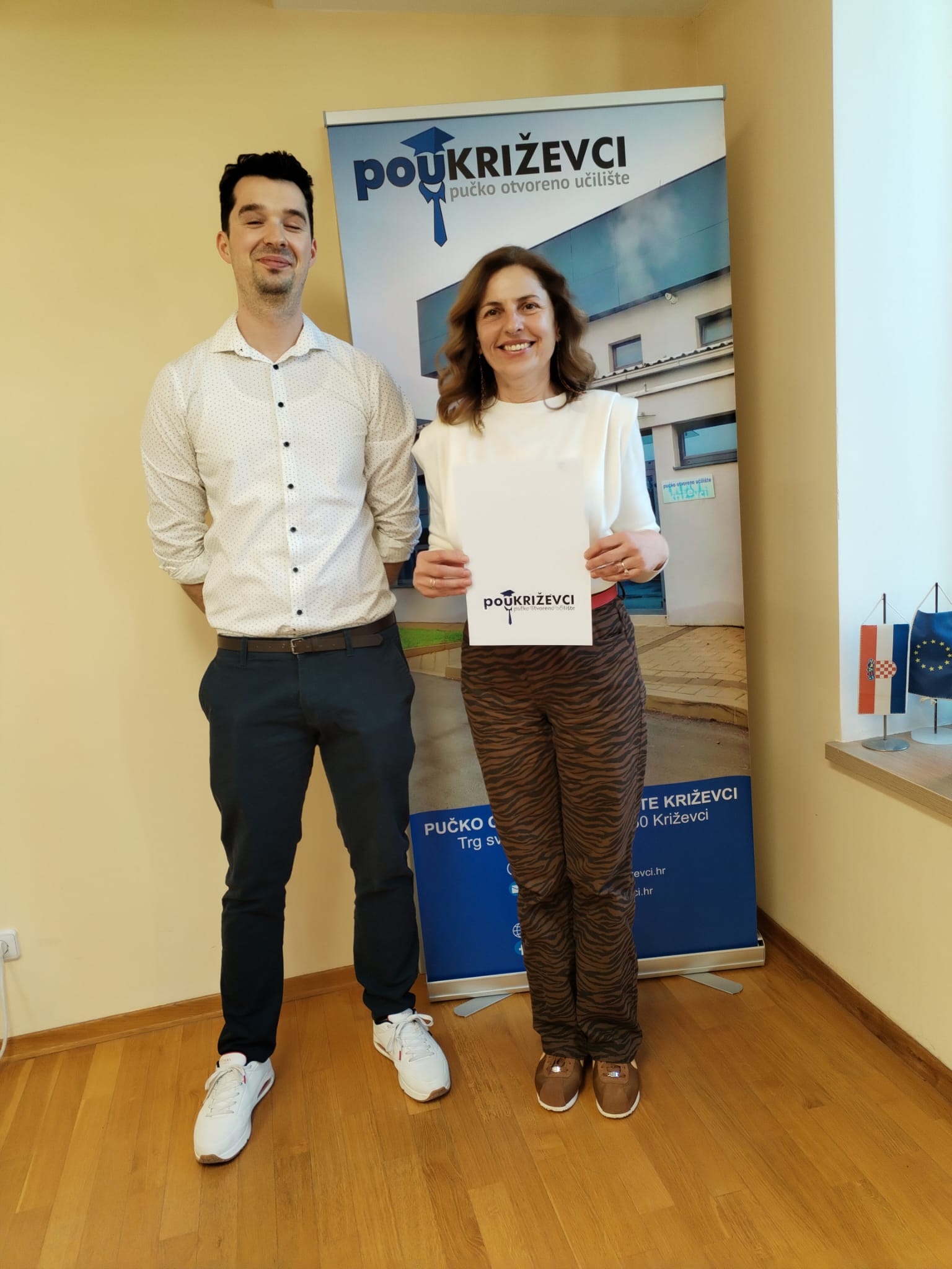U Pučkom otvorenom učilištu Križevci održana je svečana podjela uvjerenja polaznicima programa pomoćnik/pomoćnica u nastavi, koji su uspješno završili svoje obrazovanje. Na postignutom uspjehu čestitali su im stručni suradnik Karlo Jurišić, mag. educ. hist., i profesorica Mihaela Jelenčić, mag. educ. rehab., istaknuvši njihov trud, predanost i važnost ovog poziva u odgojno-obrazovnom sustavu.