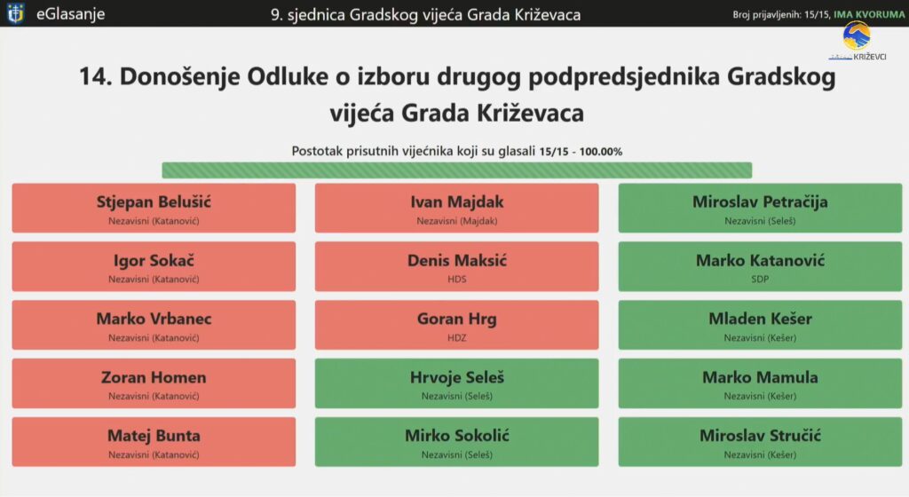 U konačnici, nakon rasprave Hrvoje Seleš nije izglasan za drugog potpredsjednika Gradskog vijeća jer akt nije prihvaćen s osam glasova protiv, a sedam glasova za, čime je dnevni red nakon nekoliko izmjena i dopuna ove dvoetapne maratonske sjednice iscrpljen.
