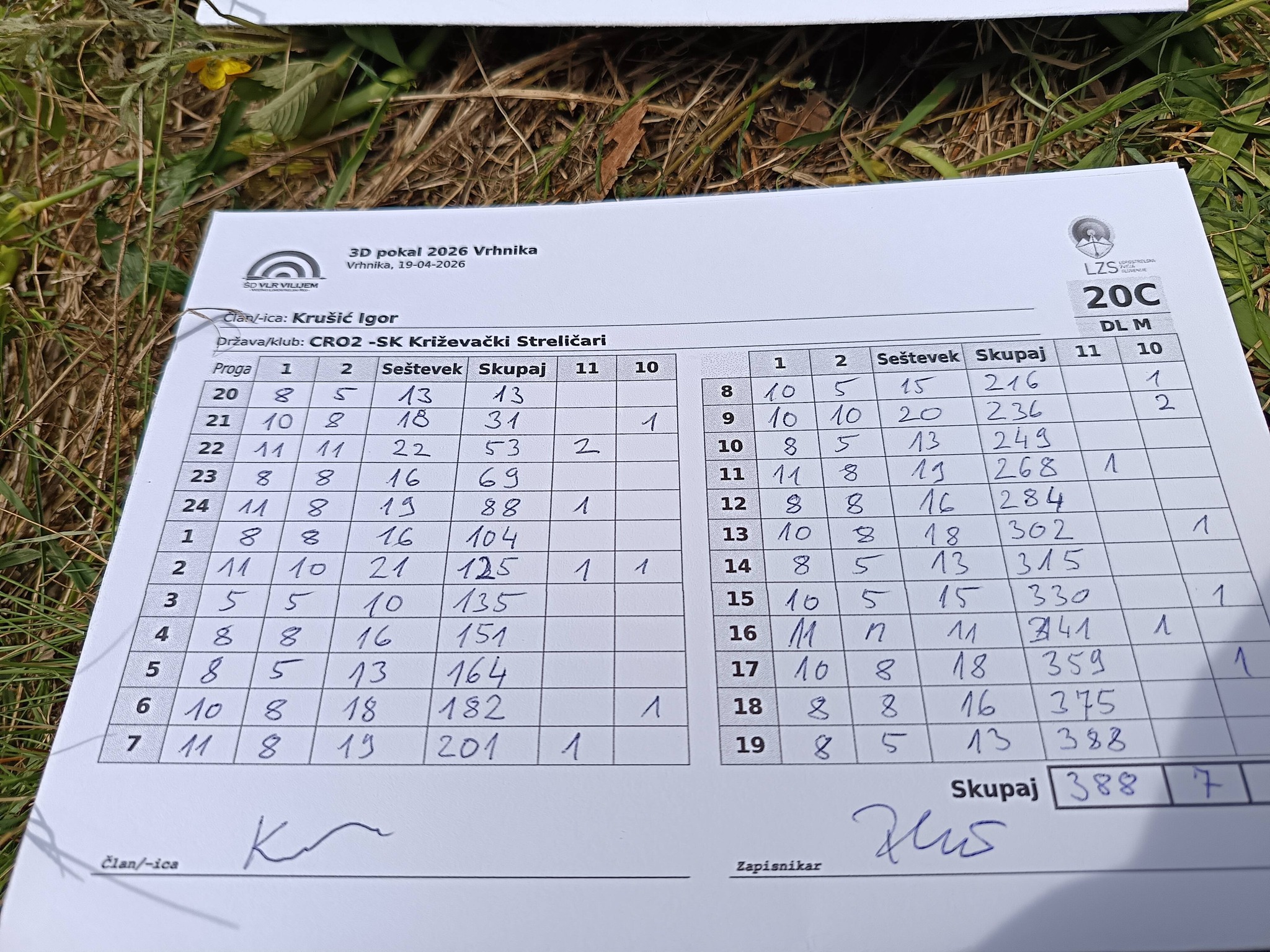 U slovenskoj Vrhniki u nedjelju, 19. travnja održan je međunarodni streličarski turnir u organizaciji ŠD VLR Vilijem, gdje je Križevačke streličare zastupao jedan natjecatelj, Igor Krušić, osvojivši u kategoriji Longbow seniori 1. mjesto s ispucanih 388 krugova. Time je ispunio prvu normu za odlazak na Svjetsko prvenstvo u SAD – Yankton 2026 World Archery 3D Championships 2026, koje će se održati od 28. rujna do 3. listopada.